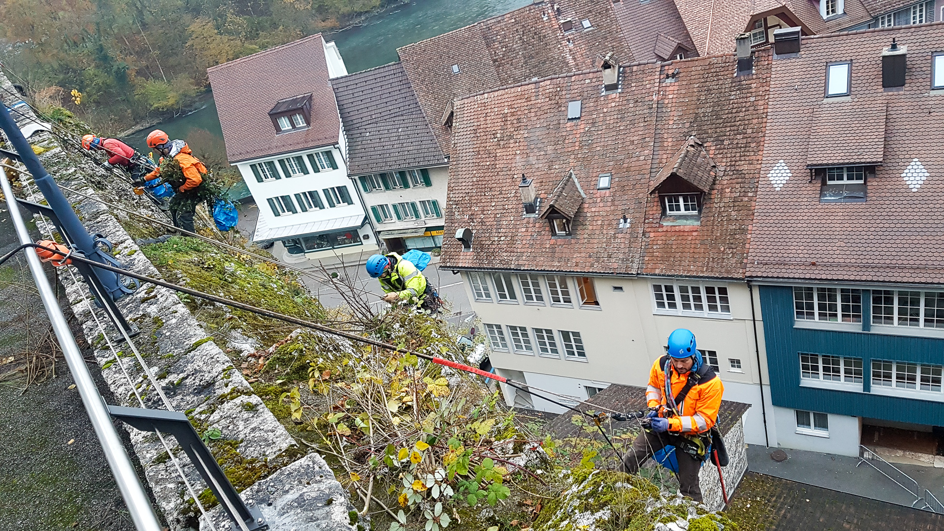 An schwer zugänglichen Stellen kann unerwünschter Grünwuchs kann entfernt werden. Bäume können stückweise gefällt werden, wenn zu wenig Platz da ist um diese herkömmlich zu fällen.